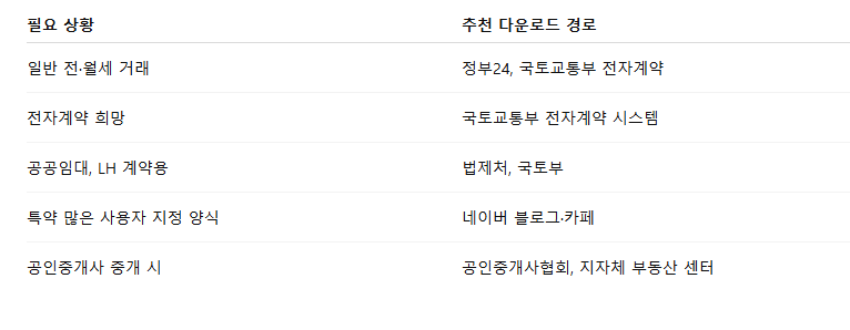 - 국토교통부 – 부동산 표준계약서 제공 (PDF 및 한글파일)