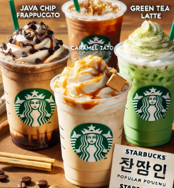 | 인기메뉴 | 카라멜 마키아또, 자바칩 프라푸치노, 그린티 라떼, 바닐라 라떼, 콜드브루 |