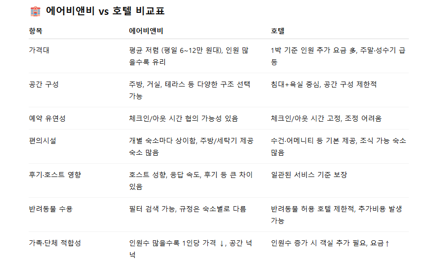 에어비앤비 숙소검색을 할 때 단순히 가격만 보는 것이 아니라 숙소 유형과 제공되는 편의시설을 함께 필터링하면 만족도 높은 예약이 가능합니다. 예를 들어 전체 공간을 원하거나 혼자 여행할 경우 개인실이 더 적합할 수 있으며, 주방이나 세탁기를 제공하는 숙소는 장기 여행 방문객에게 더욱 큰 메리트를 줍니다. 자차 여행자라면 무료 주차 옵션이 필수이며 반려견과 함께하는 여행이라면 애완동물 허용 여부도 반드시 확인해야 합니다. 최근에는 와이파이, 주방, 무료주차 옵션이 기본 제공되는 숙소가 늘어나고 있어 필수 편의시설 필터를 정확하게 설정하면 에어비앤비 숙소검색 시 훨씬 만족도 높은 결과를 얻을 수 있습니다.