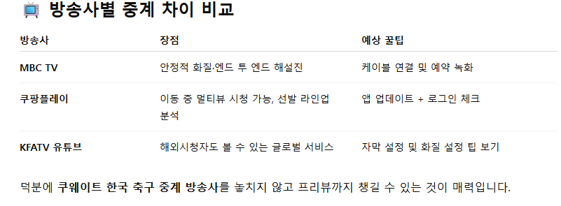 “어디서 볼까?” 고민하는 분들을 위해 쿠웨이트 한국 축구 중계 방송사 정보를 정확하고 알기 쉽게 정리했습니다.