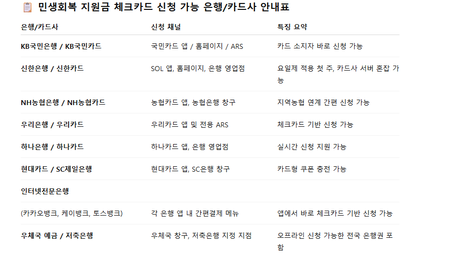 ✅ 민생회복 지원금 체크카드 신청 가능한 곳